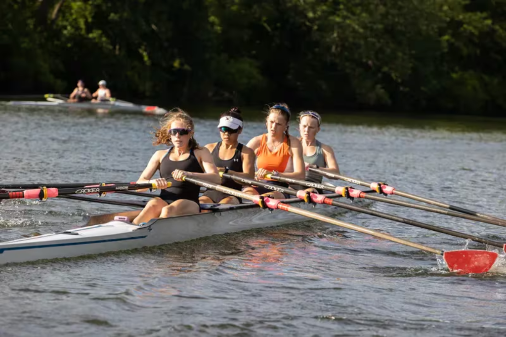 From left, Conestoga rowers Guin Reaume, Eva Ong, Charlotte Hagerman, and Helena Laursen practice.